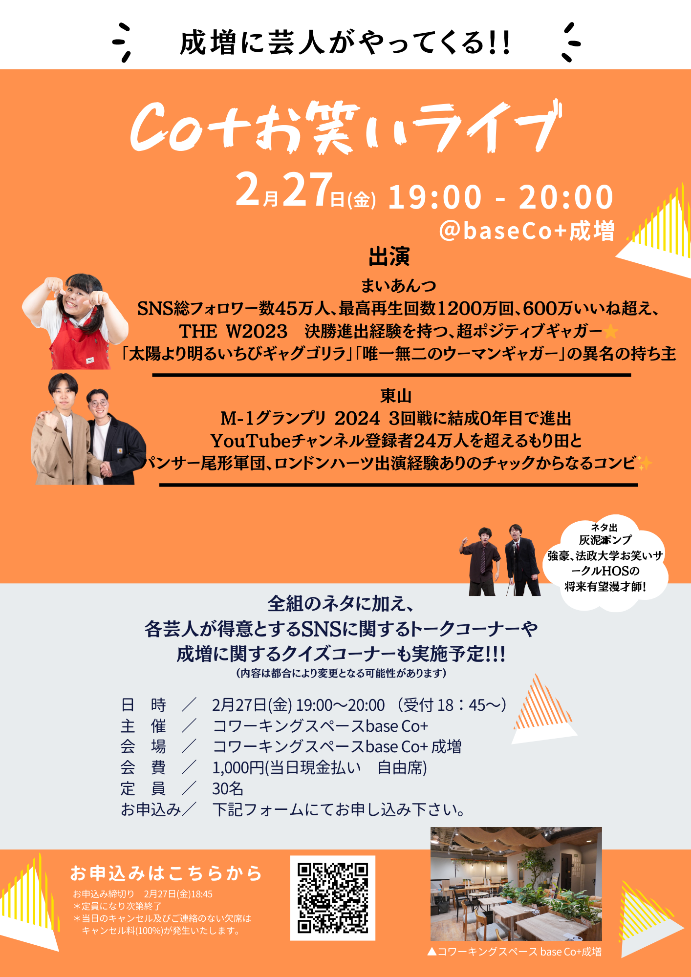 | 主 催 | コワーキングスペース base Co+(ベースコプラス) |