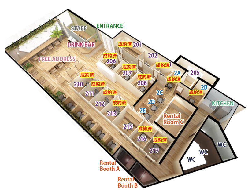 *:個室オフィス・半個室オフィスの空き状況は随時変動いたしますので、お電話またはメールフォームからお問い合わせください。
